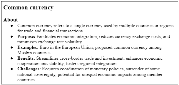 - Bangladesh Prime Minister Sheikh Hasina suggests the adoption of a common currency, similar to the Euro in the European Union, among Muslim countries.